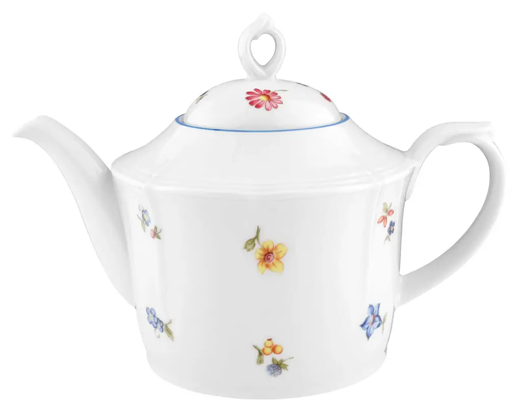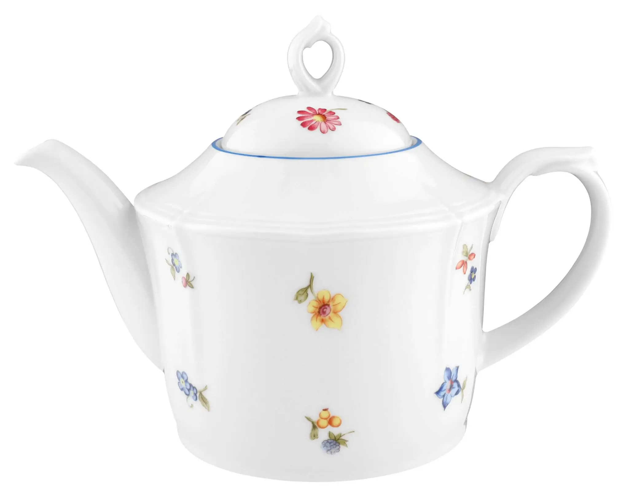 Dzbanek do herbaty o pojemności 1.1l, to elegancki i stylowy element zastawy stołowej, doskonale komponujący się z filiżankami, mlecznikiem i cukiernicą z tej samej kolekcji. Wykonany z wysokiej jakości porcelany w klasycznej bieli, ozdobiony jest subtelnym wzorem małych kwiatków oraz delikatną niebieską obwódką, która nadaje mu romantycznego charakteru.