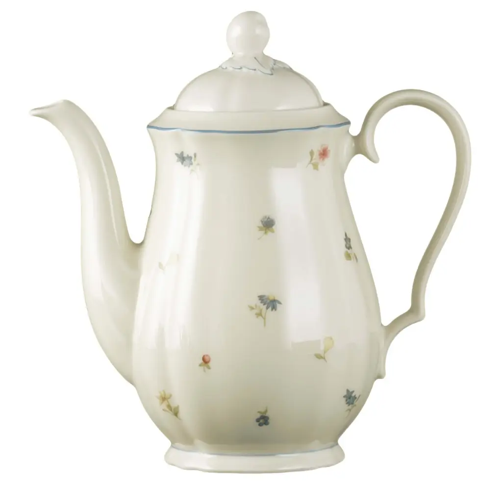 Dzbanek do kawy o pojemności 1.3L, to elegancki i stylowy element zastawy stołowej, doskonale komponujący się z filiżankami, mlecznikiem i cukiernicą z tej samej kolekcji. Wykonany z wysokiej jakości porcelany w klasycznym beżu, ozdobiony jest subtelnym wzorem małych kwiatków oraz delikatną niebieską obwódką, która nadaje mu romantycznego charakteru.