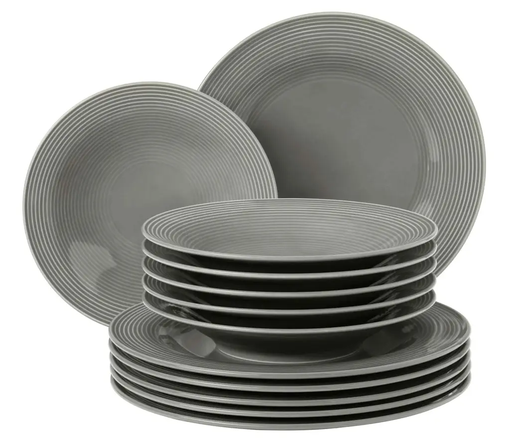Porcelanowy komplet obiadowy w odcieniu eleganckiej szarości to nowoczesny zestaw, który doskonale sprawdzi się podczas codziennych posiłków, jak i wyjątkowych okazji. Zestaw składa się z sześciu talerzy głębokich o średnicy 22.5cm oraz sześciu talerzy obiadowych o średnicy 27.5cm.