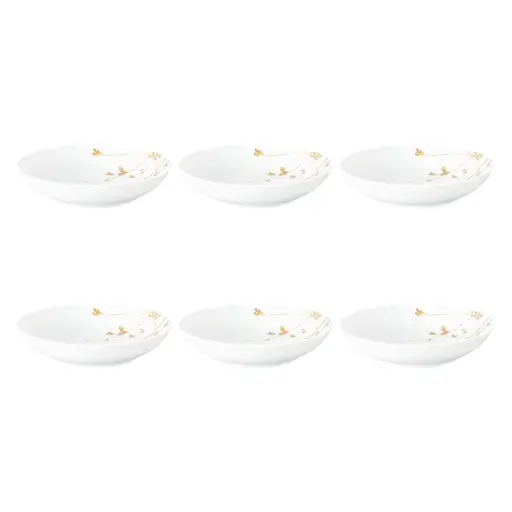 Maselniczka to elegancki i praktyczny dodatek do zastawy stołowej, idealnie komponujący się z pozostałymi elementami kolekcji. Wykonana z wysokiej jakości porcelany w klasycznej bieli, ozdobiona jest subtelnym wzorem małych kwiatków oraz delikatną niebieską obwódką, nadającą jej romantycznego charakteru.