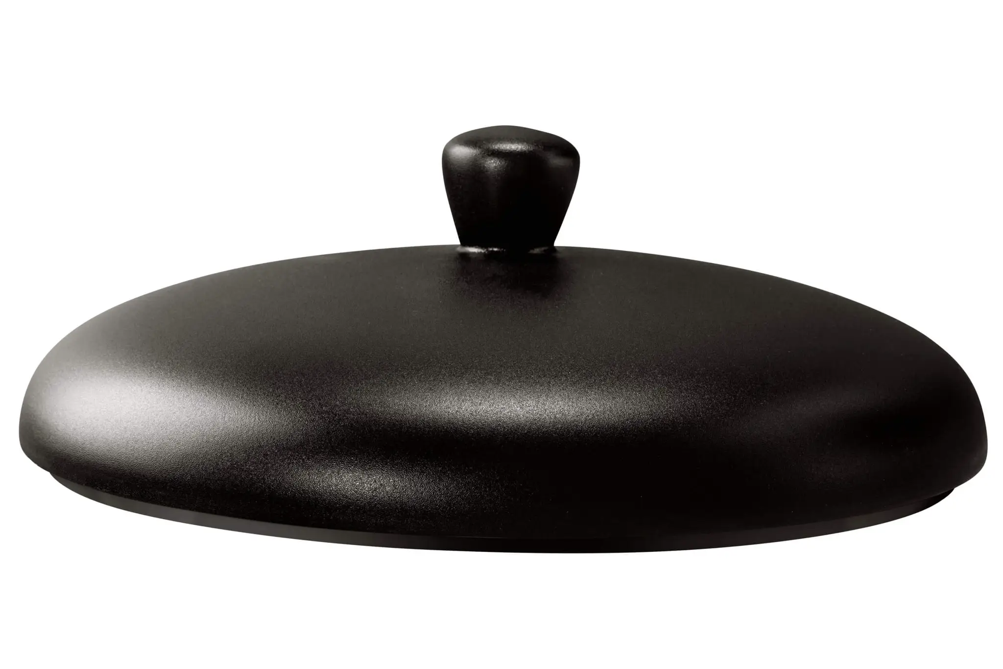 Porcelanowa pokrywka do misy o średnicy 28cm, to elegancki dodatek, który doskonale łączy funkcjonalność z nowoczesnym designem. Jej aksamitna, czarna powierzchnia nadaje jej subtelny, ale luksusowy charakter, idealnie komponując się z pozostałymi elementami zastawy stołowej.