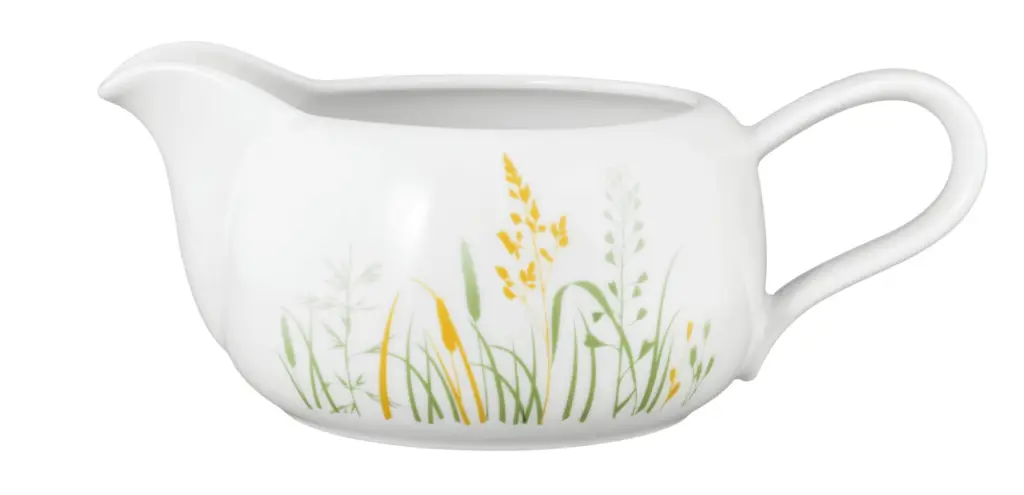Porcelanowa sosjerka o pojemności 600ml, to elegancki i praktyczny element zastawy stołowej, idealny do serwowania sosów i dressingów. Klasyczna biała barwa ozdobiona subtelnym motywem zielono-żółtej łąki nadaje jej lekkości i naturalnego uroku, harmonijnie komponując się z pozostałymi elementami kolekcji.