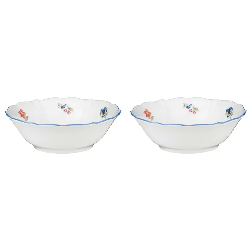 Śnieżnobiała porcelana została ozdobiona delikatnymi polnymi kwiatami, a w połączeniu z niebieską obwódką miseczki zyskują romantyczny, rustykalny charakter. Falowane brzegi dodają subtelności, a trwałe wykonanie zapewnia użytkowanie przez lata.