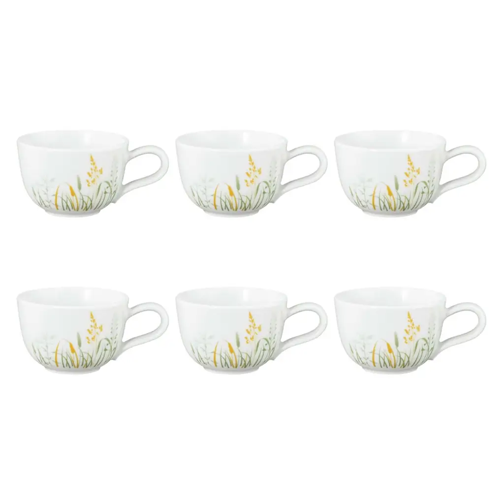 Filiżanka do espresso o pojemności90 ml, to kwintesencja letniej lekkości i elegancji. Biała porcelana stanowi doskonałe tło dla delikatnego wzoru zielono-żółtych polnych kwiatów i traw, przywołującego obraz letniej łąki skąpanej w słońcu.