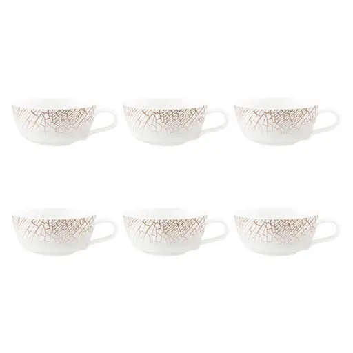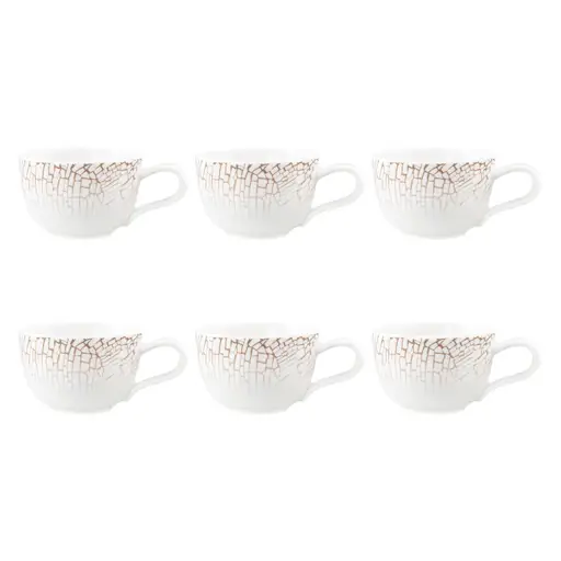 Zestaw porcelanowych filiżanek do kawy o pojemności 260ml, to wyjątkowa propozycja dla osób ceniących oryginalny design i elegancję. Klasyczna biel została wzbogacona o wyrazisty wzór popękania, który pokrywa zewnętrzną powierzchnię filiżanek, nadając im unikalny i artystyczny charakter.