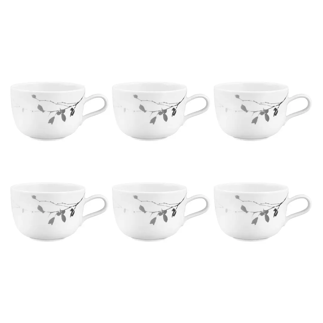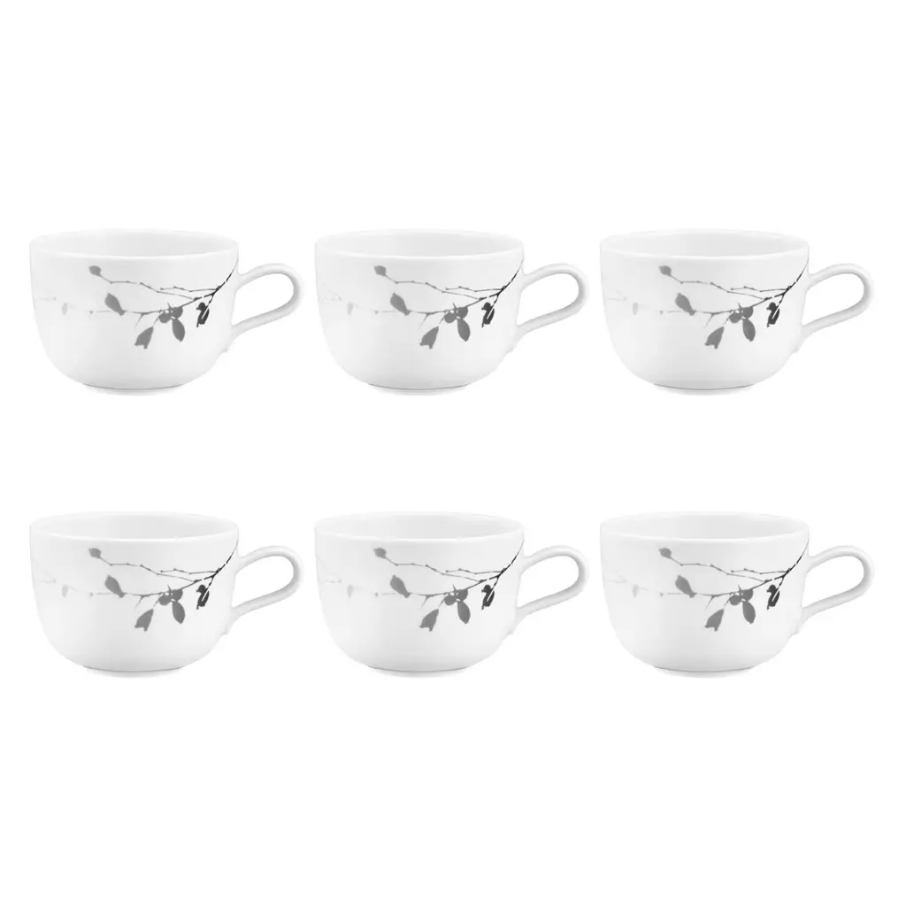 Zestaw filiżanek o pojemności 260ml, to połączenie klasycznej elegancji i subtelnej inspiracji naturą. Biała porcelana stanowi doskonałe tło dla delikatnego ciemnego wzoru listków, który dodaje filiżankom wyrafinowanego i stylowego charakteru.