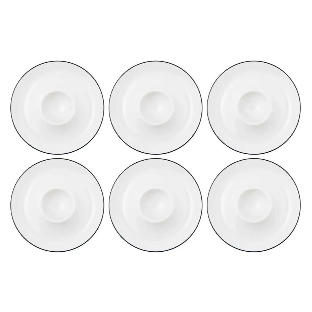Białe porcelanowe podstawki na jajka z kolekcji Lido Black Line, to stylowy i nowoczesny dodatek do eleganckiej zastawy stołowej. Ich średnica 12.5cm zapewnia wystarczająco dużo miejsca na jajko oraz dodatkowe dodatki, takie jak sól czy pieprz.