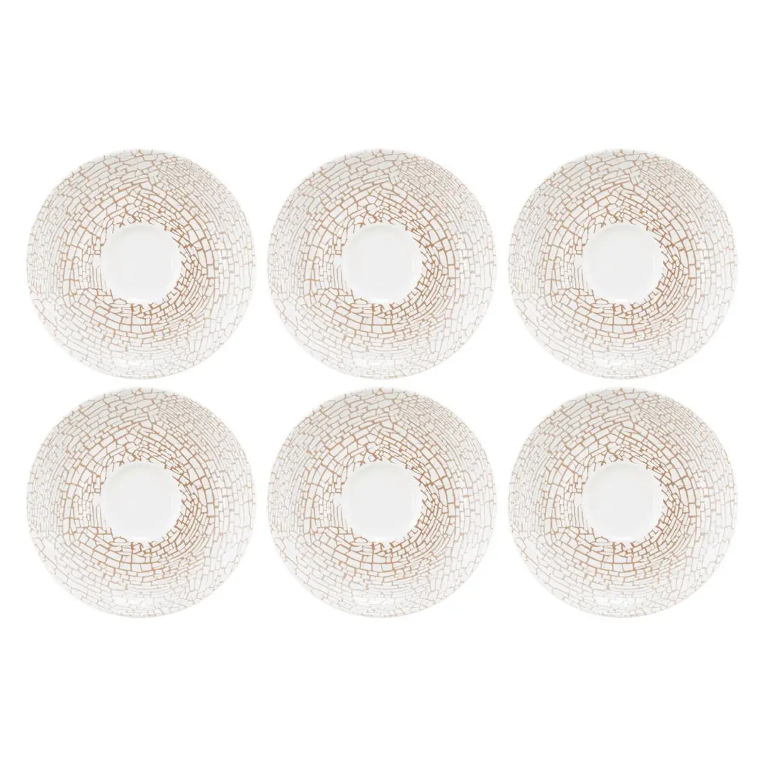 Zestaw porcelanowych spodków o średnicy 16.5cm, to elegancki i praktyczny dodatek do filiżanek, który doskonale uzupełni każdą zastawę stołową. Klasyczna biel została wzbogacona o wyrazisty wzór popękania, który pokrywa zewnętrzną powierzchnię, nadając spodkom niepowtarzalny i artystyczny charakter.