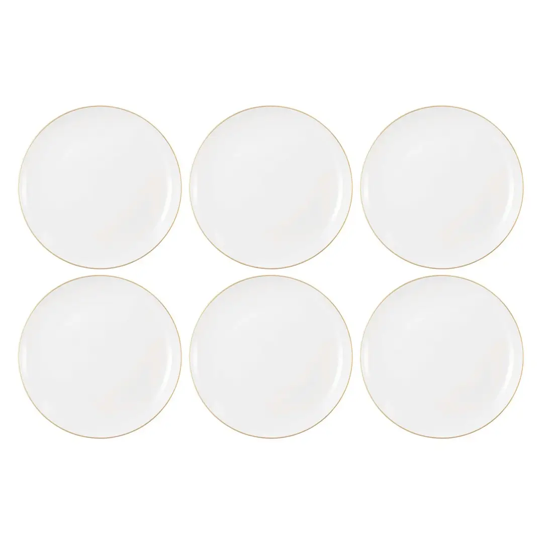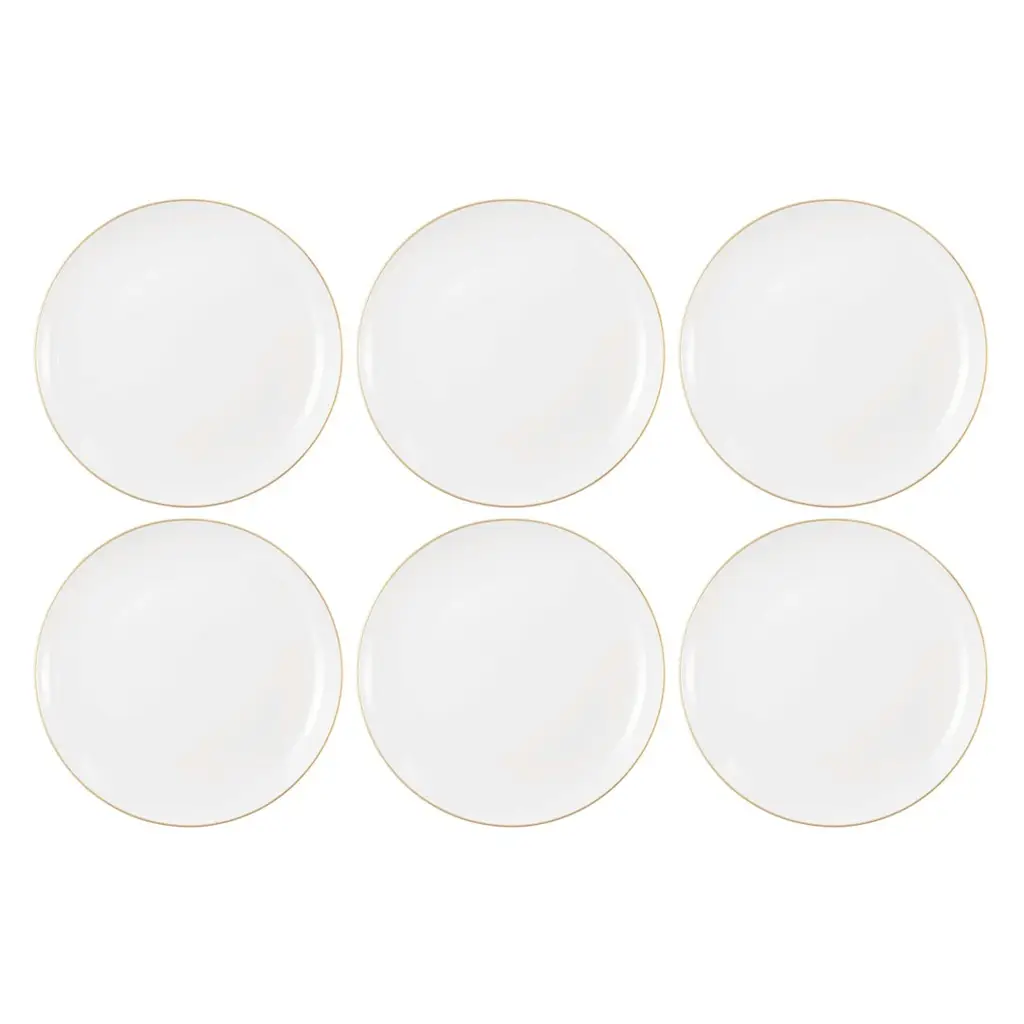 Zestaw eleganckich białych talerzy do sałatek o średnicy 22.5cm, to doskonały wybór dla osób ceniących klasyczną estetykę i subtelne detale. Ich ponadczasowy design, wzbogacony delikatną złotą linią dookoła, dodaje wyjątkowego uroku każdemu nakryciu stołu.