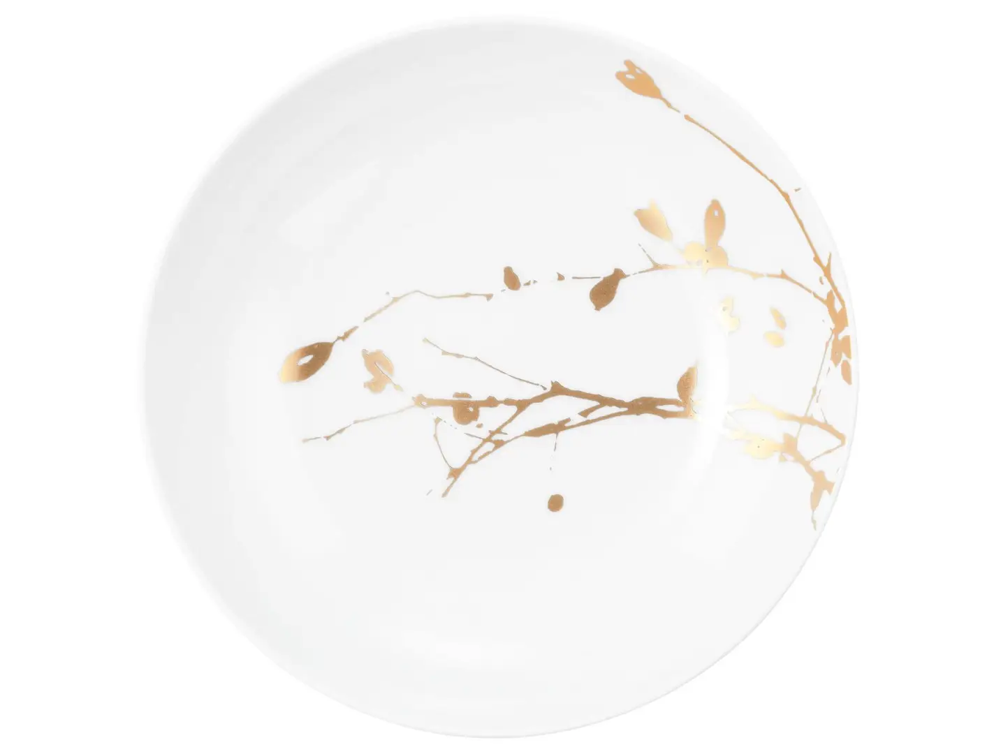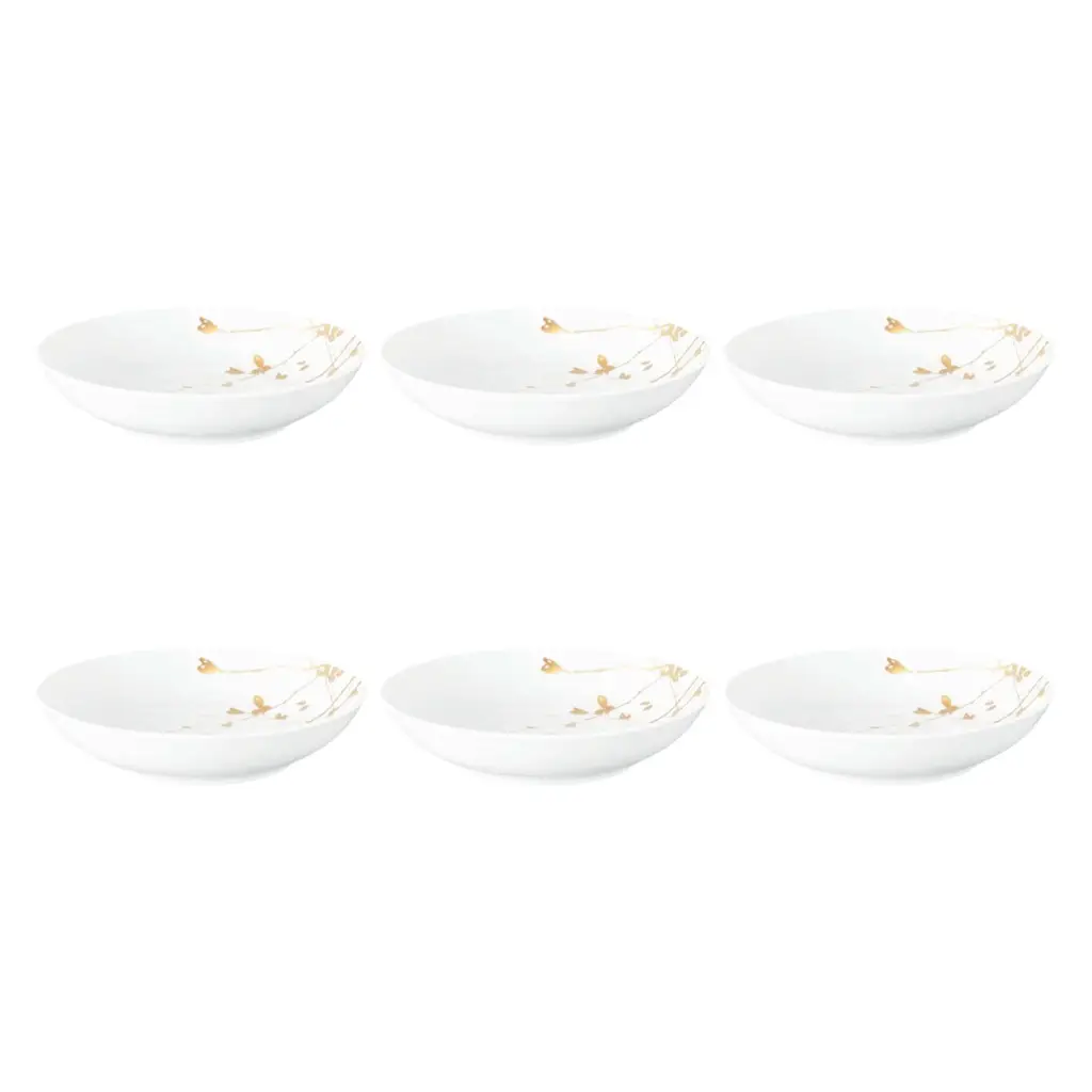 Zestaw talerzy do zupy o średnicy 21cm to elegancka i stylowa propozycja dla osób ceniących subtelne wzornictwo inspirowane naturą. Biała porcelana stanowi doskonałe tło dla delikatnego złotego wzoru listków, który nadaje naczyniom wyrafinowanego i luksusowego charakteru.