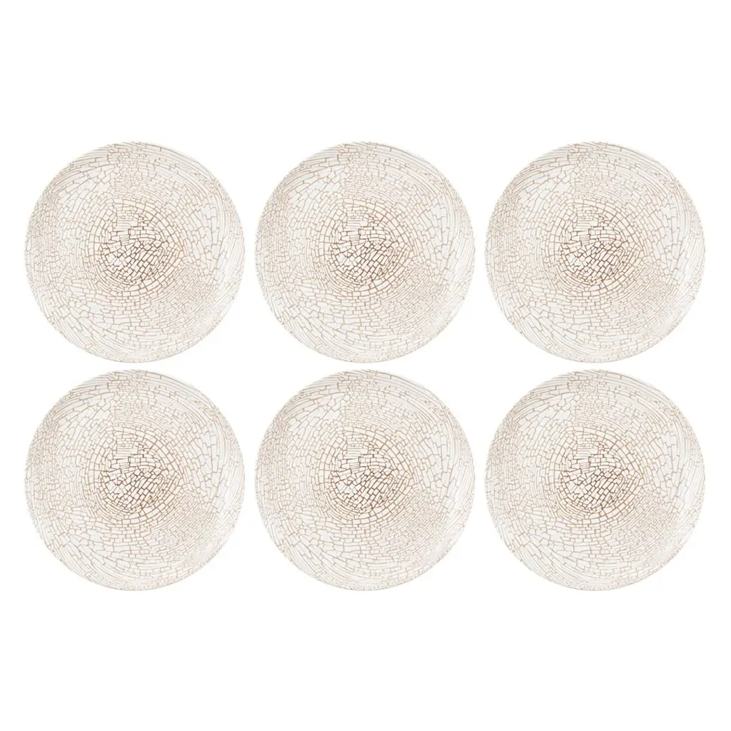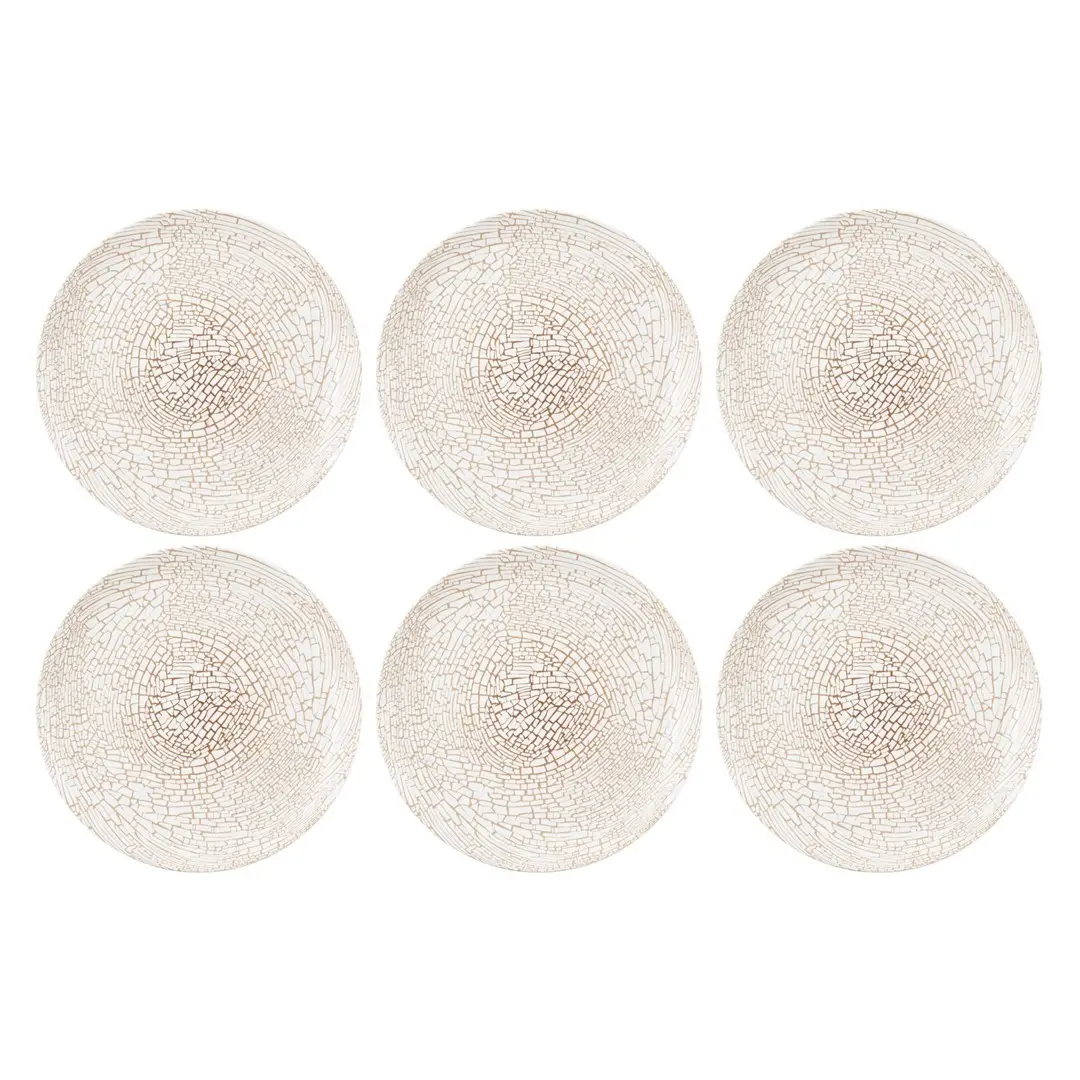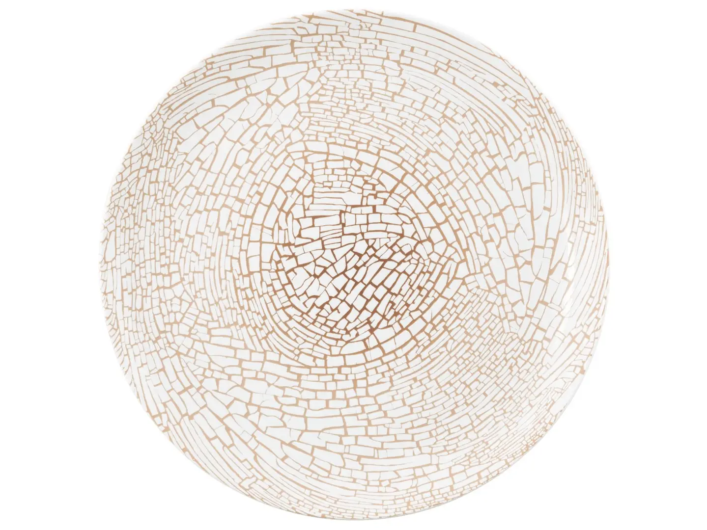 Zestaw porcelanowych talerzy obiadowych o średnicy 27.5cm, to elegancka propozycja dla osób ceniących stylową i oryginalną zastawę stołową. Klasyczna biel porcelany została ozdobiona wyrazistym wzorem popękania, który pokrywa zewnętrzną powierzchnię, nadając talerzom niepowtarzalny i artystyczny charakter.