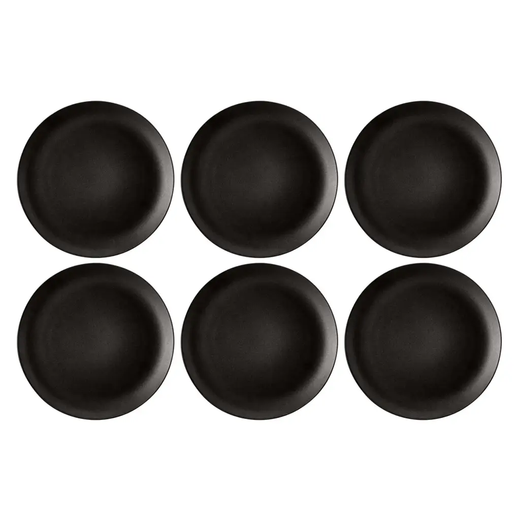 Zestaw 6 porcelanowych talerzy obiadowych o średnicy 27.5cm, to elegancki element zastawy stołowej, który podkreśli wyjątkowy charakter serwowanych dań. Aksamitna czerń nadaje im wyrafinowanego wyglądu, doskonale komponując się zarówno z nowoczesnym, jak i klasycznym stylem nakrycia stołu.