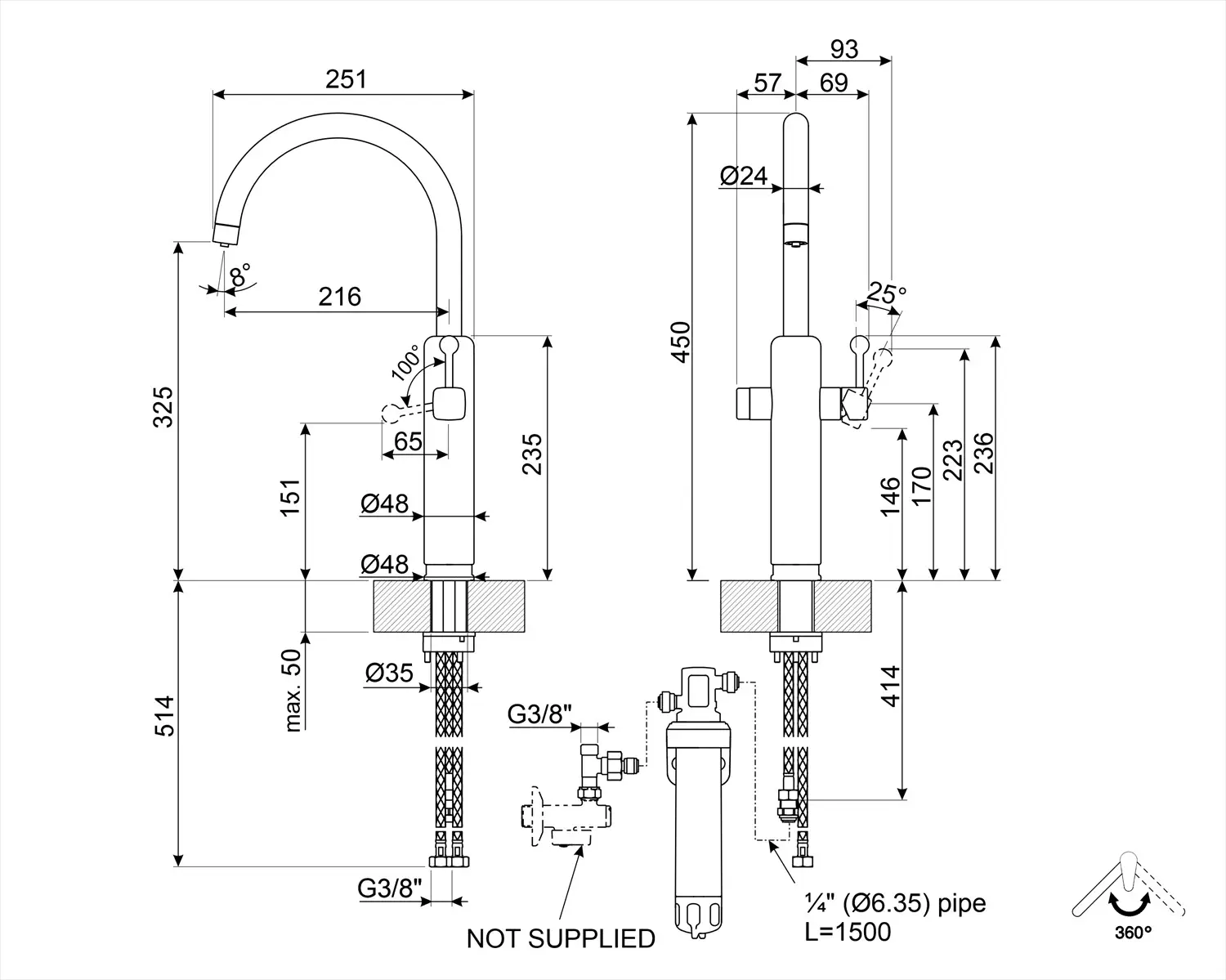 - Podłączenie wężyka: 3/8 "