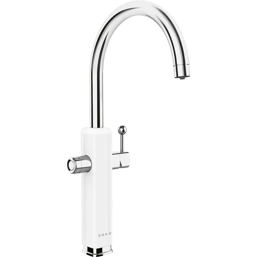 Bateria kuchenna Smeg MAF50 50’s Style to eleganckie połączenie retro designu z nowoczesną funkcjonalnością. Wyposażona w system 3 w 1, dostarcza wodę zimną, ciepłą oraz filtrowaną dzięki wbudowanemu filtrowi węglowemu, który poprawia smak i jakość wody. Obracana wylewka typu „J” zapewnia wygodę użytkowania, a solidne wykonanie (mosiądz, ceramiczna głowica) gwarantuje trwałość. To stylowe rozwiązanie, które podnosi komfort w kuchni i ogranicza potrzebę kupowania wody butelkowanej.