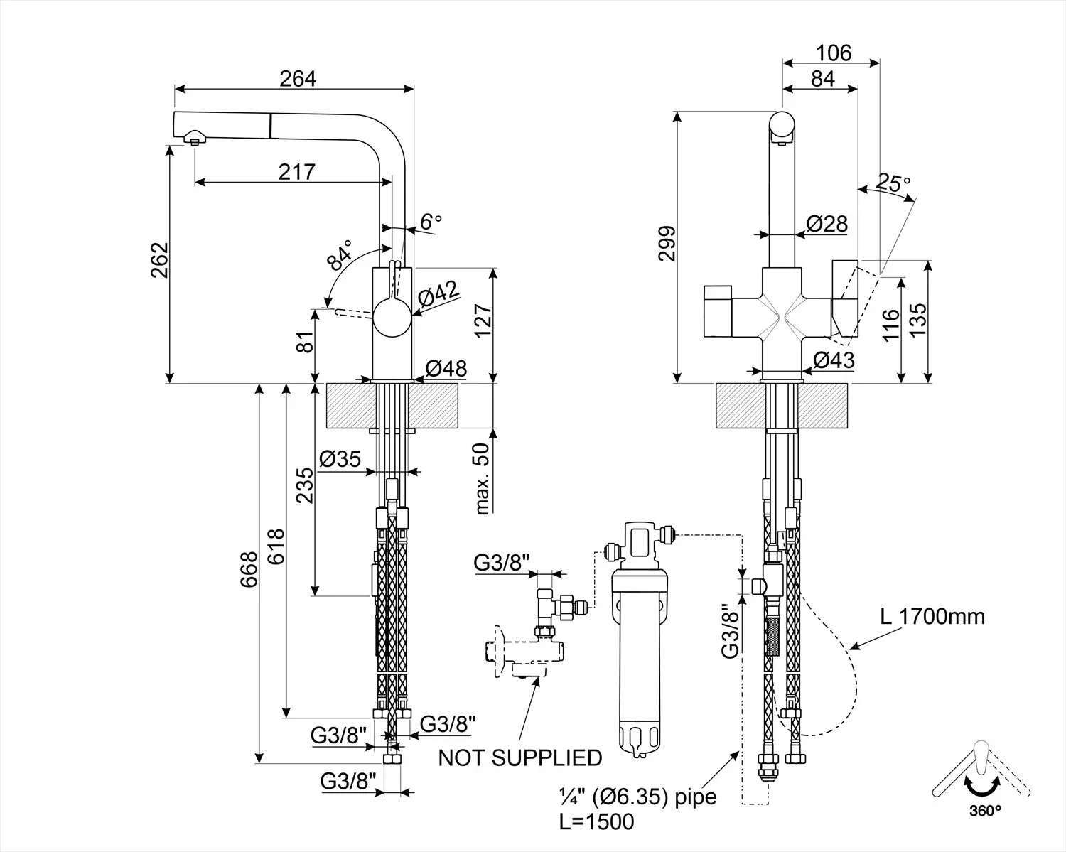 - Podłączenie wężyka: 3/8 "