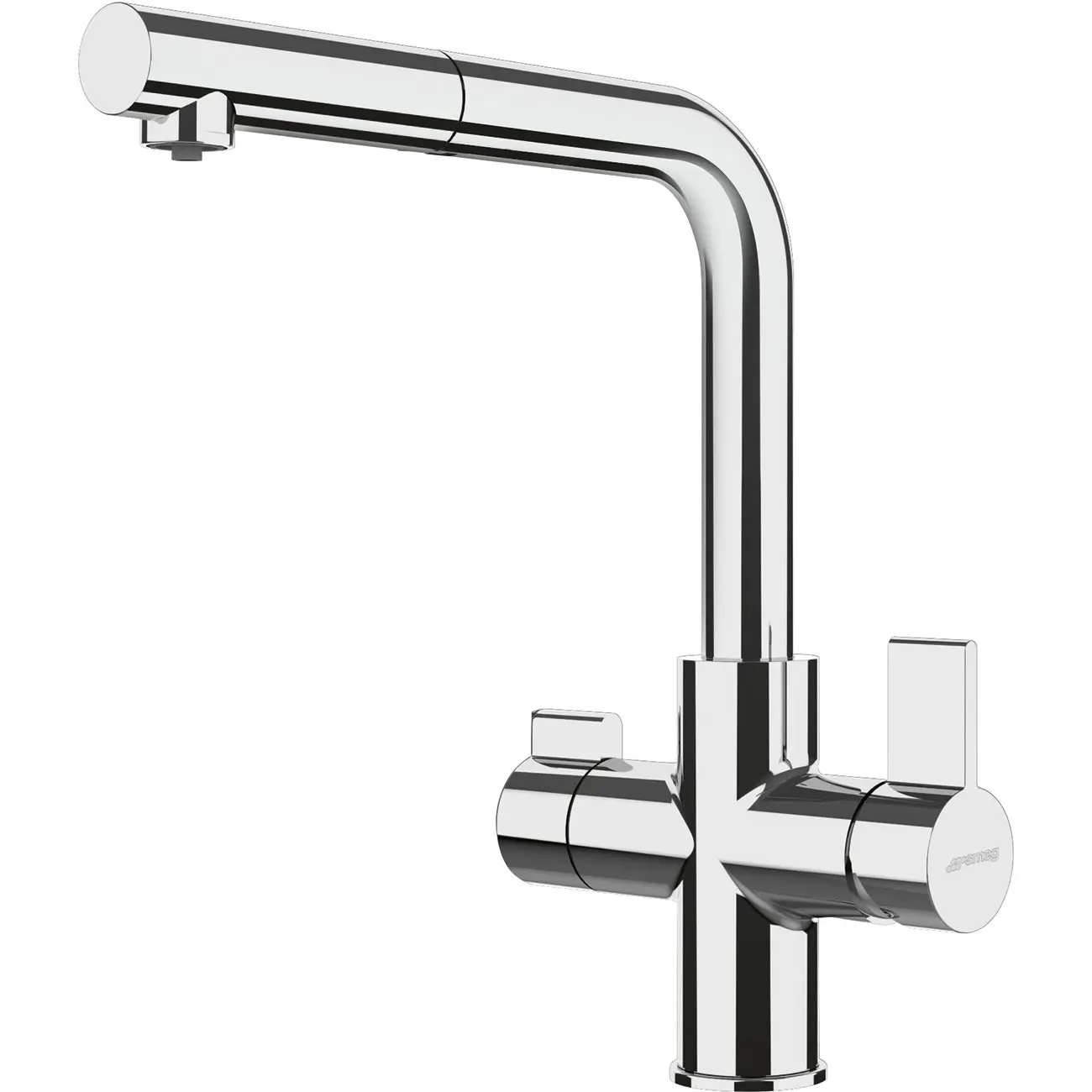 Bateria kuchenna Smeg MAFD1CR Universal (chrom) to elegancka i wszechstronna propozycja 3 w 1 – dostarcza wodę gorącą, zimną i filtrowaną bezpośrednio z jednej armatury. Wyposażona w oddzielny, dedykowany uchwyt do filtrowanej wody oraz wyciąganą wylewkę, której zasięg znacznie ułatwia pracę przy zlewozmywaku.