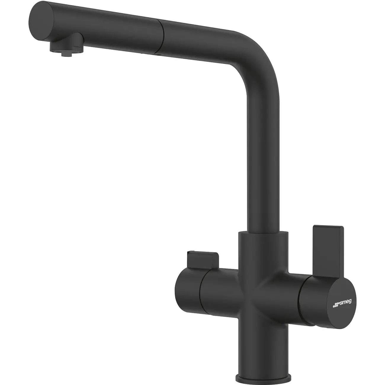 Bateria kuchenna Smeg MAFD1MN Universal to elegancka i wszechstronna propozycja 3 w 1 – dostarcza wodę gorącą, zimną i filtrowaną bezpośrednio z jednej armatury. Wyposażona w oddzielny, dedykowany uchwyt do filtrowanej wody oraz wyciąganą wylewkę, której zasięg znacznie ułatwia pracę przy zlewozmywaku.