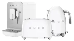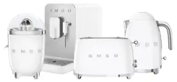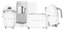 Ekspres do kawy BCC12WHMEU w matowym odcieniu koloru białego z serii 50's Retro style od firmy Smeg został zaprojektowany dla wszystkich tych, którzy pomimo wielu zajęć cenią sobie chwilę przyjemności z ulubionym napojem.