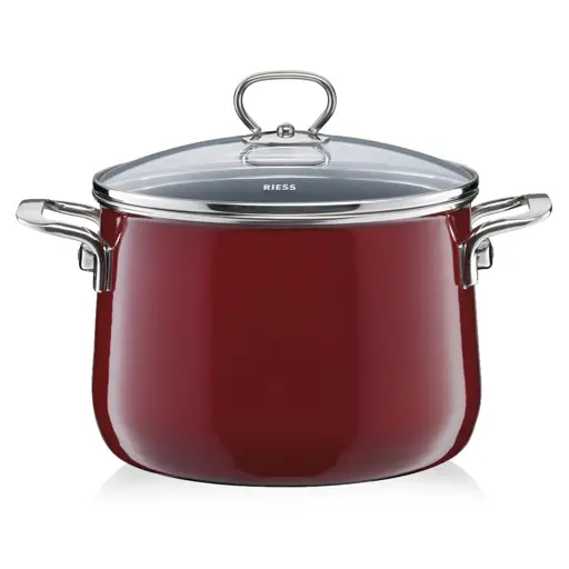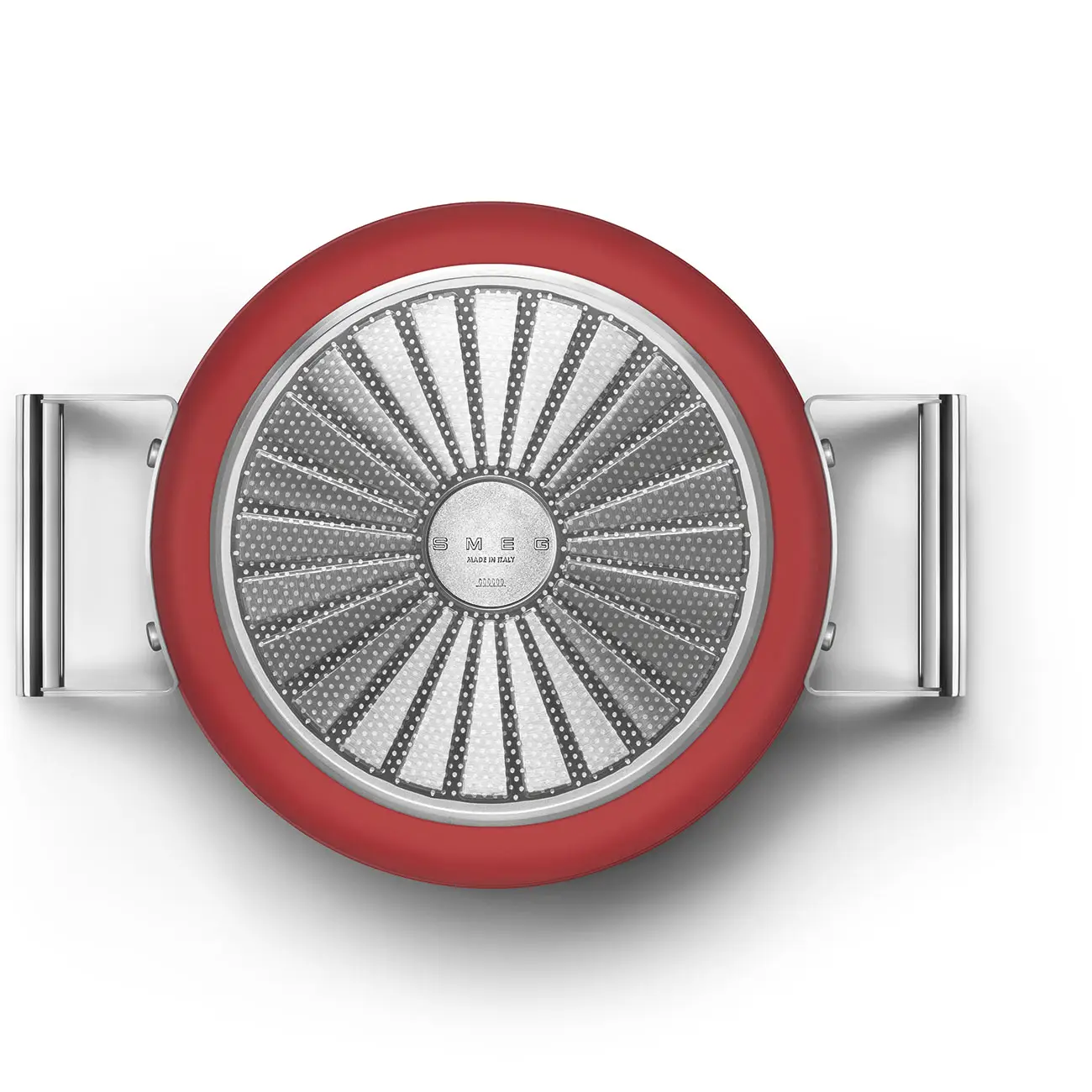 Garnek o średnicy 26 cm w kolorze czerwonym z linii 50's Style włoskiej firmy Smeg to estetyczny design, gwarancja smażenia bez przypalania, łatwość w czyszczeniu oraz przystosowanie do każdej płyty grzewczej.