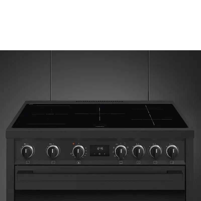 Kuchnia wolnostojąca B95IMAN9 z czyszczeniem parowym w kolorze antracytowym z linii Master od firmy Smeg to płyta indukcyjna, dla szybszego gotowania oraz piekarnik elektryczny klasy A dla większej wygody pieczenia potraw.