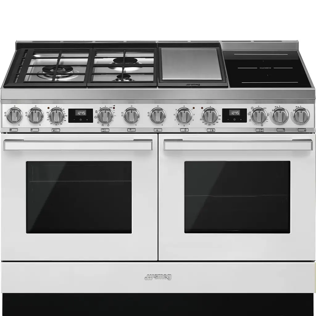 Kuchnia wolnostojąca CPF120IGMPWH od marki Smeg to odzwierciedlenie wielofunkcyjności. Płyta indukcyjna, gazowa, grill oraz dwa piekarniki pozwolą na przygotowanie każdej potrawy - w wielkim stylu.