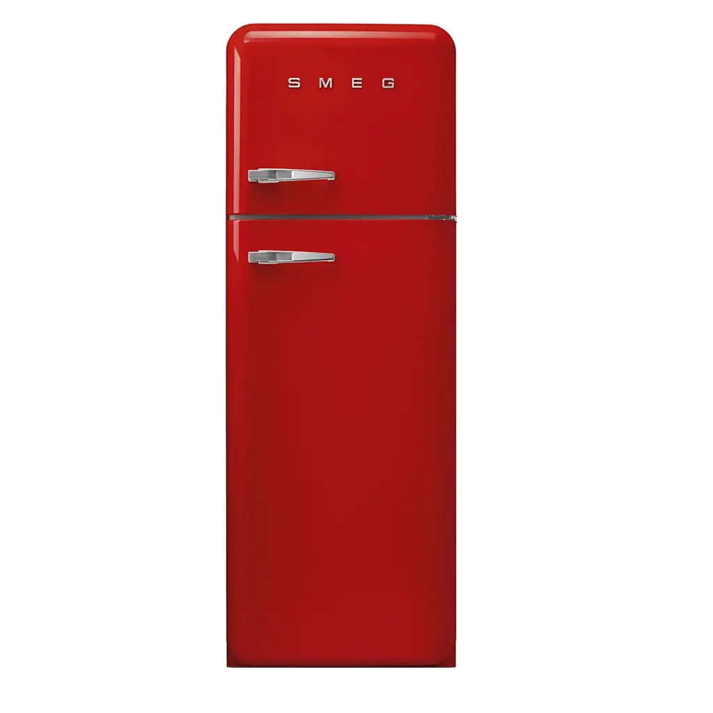 Lodówka Smeg z niepowtarzalnej linii produktów Retro 50’s to propozycja dla wszystkich miłośników dobrej kuchni i stylistyki typu Retro. Wyjątkowo piękny design nawiązujący do lat 50-tych ubiegłego wieku pozwala przenieść się w tamte czasy i stworzyć unikalny wystrój swojej stylowej kuchni. Lodówka posiada chromowany uchwyt i logo.