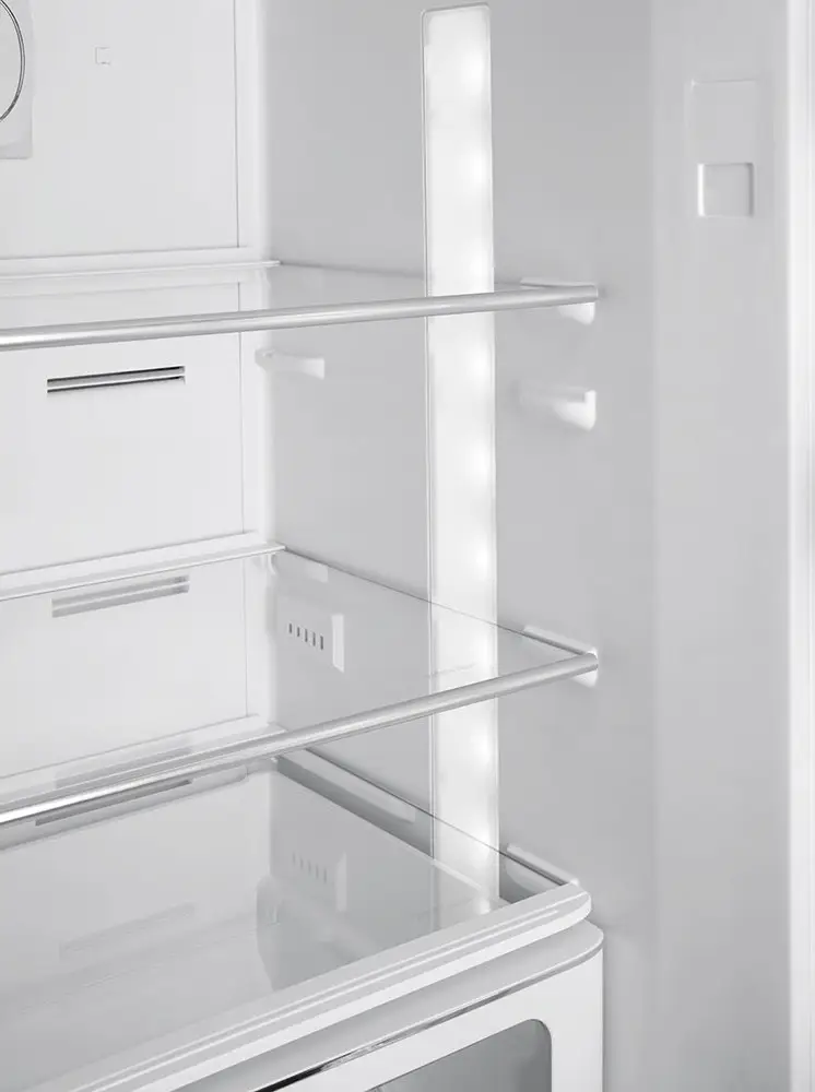 Lodówka Smeg z niepowtarzalnej linii produktów Retro 50’s to propozycja dla wszystkich miłośników dobrej kuchni i stylistyki typu Retro. Wyjątkowo piękny design nawiązujący do lat 50-tych ubiegłego wieku pozwala przenieść się w tamte czasy i stworzyć unikalny wystrój swojej stylowej kuchni. Lodówka posiada chromowany uchwyt i logo.