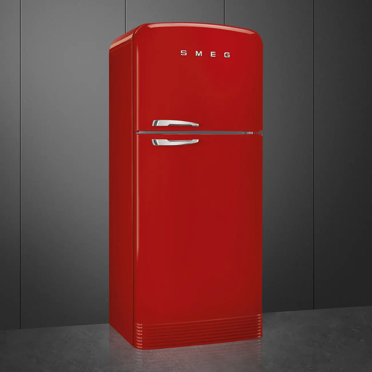Lodówka Smeg z niepowtarzalnej linii produktów Retro 50’s to propozycja dla wszystkich miłośników dobrej kuchni i stylistyki typu Retro. Wyjątkowo piękny design nawiązujący do lat 50-tych ubiegłego wieku pozwala przenieść się w tamte czasy i stworzyć unikalny wystrój swojej stylowej kuchni. Lodówka posiada chromowany uchwyt i logo.