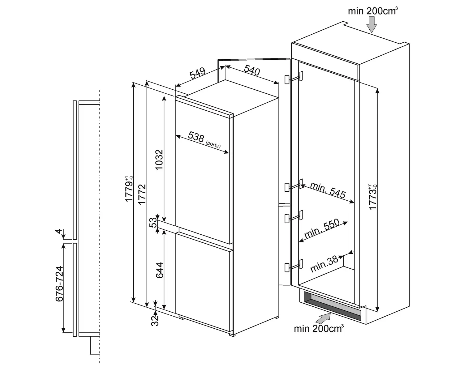 - Wymiary (W x S x G): 1775 x 540 x 549 mm