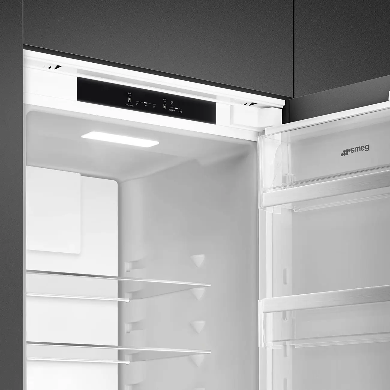 Dzięki wewnętrznemu wyświetlaczowi LCD można wygodnie kontrolować temperaturę i ustawienia urządzenia, zachowując jednocześnie estetyczny wygląd frontu meblowego.