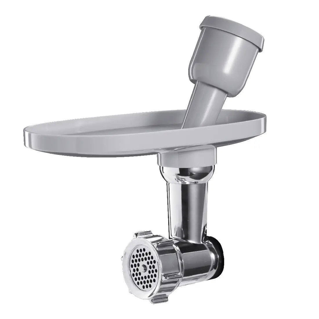 Przystawka została zaprojektowana z myślą o bezwysiłkowym mieleniu mięsa za pomocą mocnego silnika znajdującego się w mikserach marki SMEG. Korpus maszynki został wykonany z wytrzymałego stopu aluminium który zapewni stabilność nawet przy najcięższych zadaniach. Misa zsypowa została natomiast wykonana z lekkiego tworzywa sztucznego. W zestawie znajdują się 3 wymienne dyski o różnych średnicach otworów: duże o średnicy 8,0 mm, średnie 4,2 mm oraz małe 3,0 mm. Dodatkowo w komplecie znajdziesz nasadki do libańskich Kebbe oraz do wypełniania kiełbas, silikonowe akcesorium do mycia małego i średniego dysku, popychacz oraz pojemnik z pokrywką.