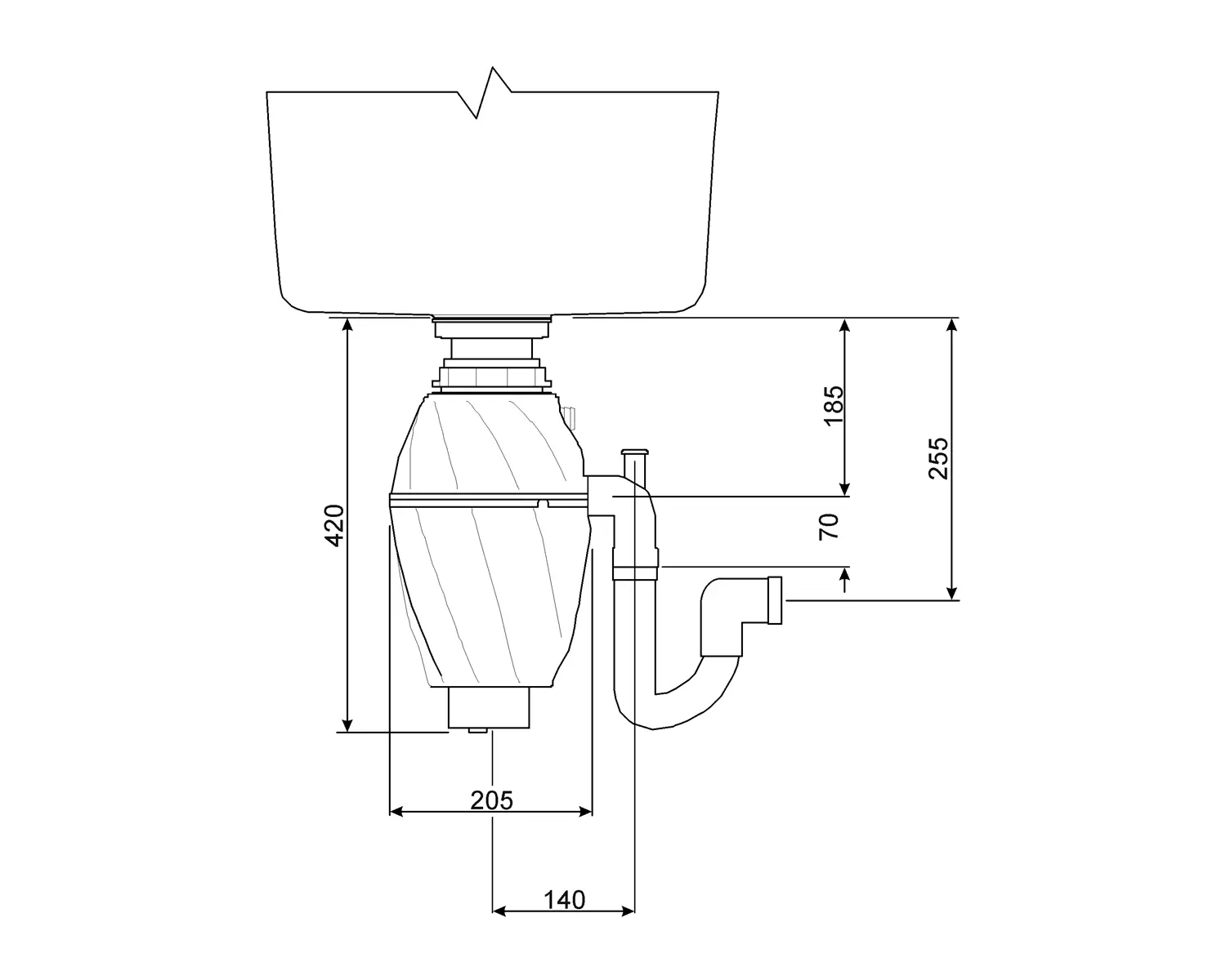 - Młynek do odpadów 0,75 KM, Silnik: 1/2 KM