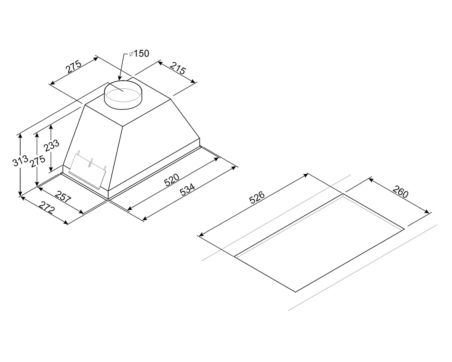 Szerokość okapu: 54 cm