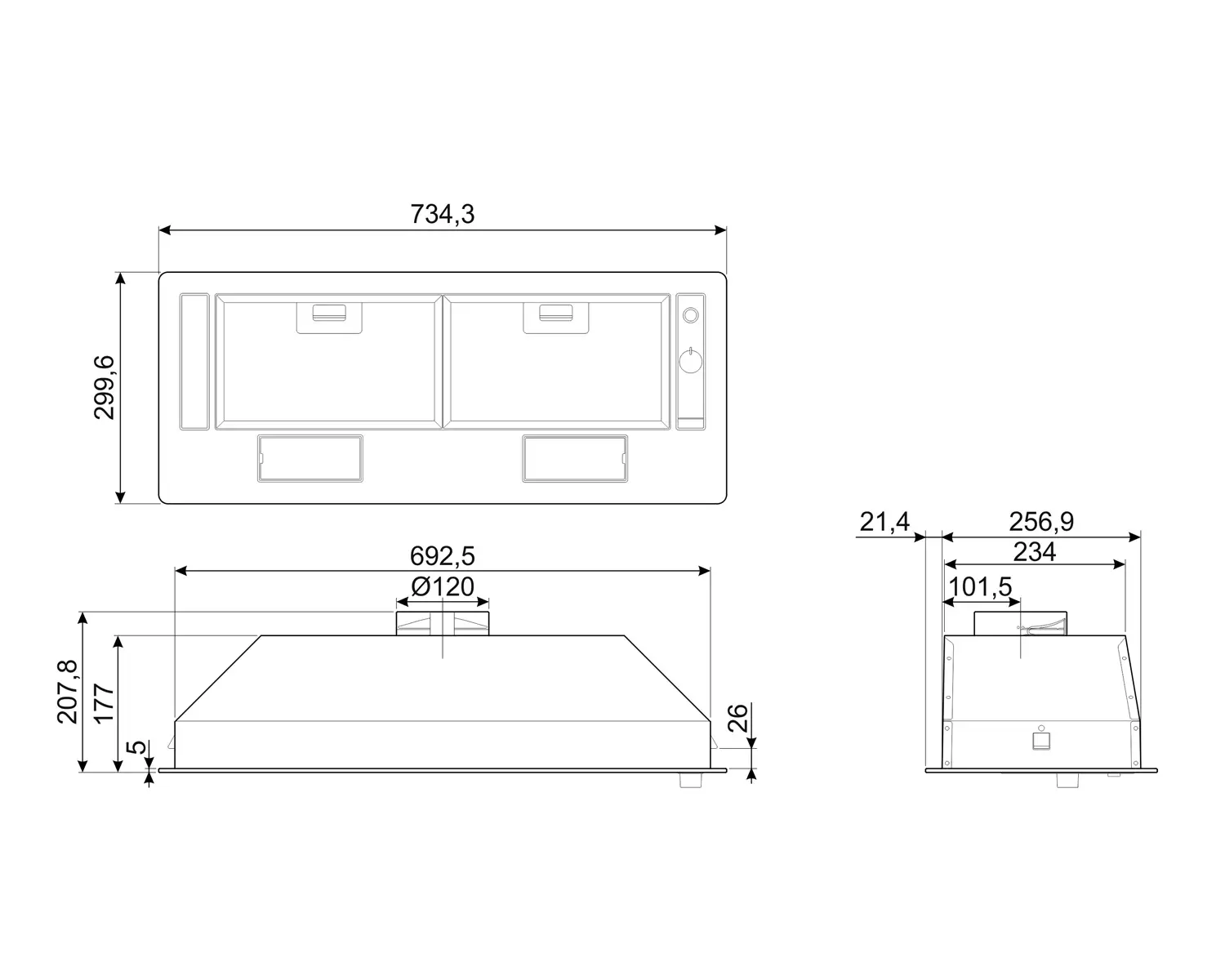 | Wymiary (W x S x G): | 208 x 734 x 300 mm |
