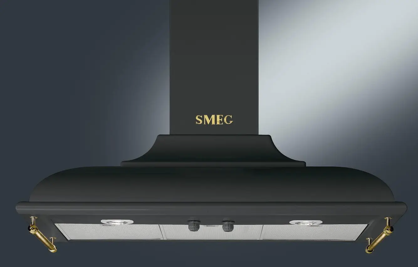 Okap przyścienny KC19AOE w kolorze antracytu z linii Cortina od firmy Smeg sprawdza się przy pochłanianiu zapachów gotowanych potraw. Filtry wykonane z wielowarstwowej stali nierdzewnej albo aluminium (opcjonalnie: FLT6 – filtr węglowy), są idealnym rozwiązaniem w oczyszczaniu tłustych oparów powstałych w czasie gotowania.