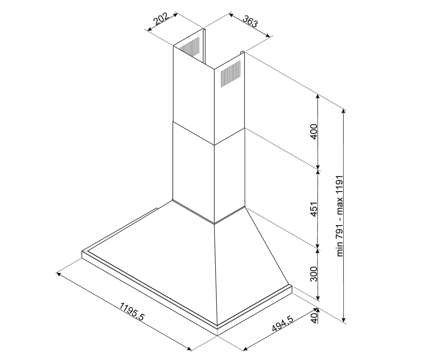 Szerokość okapu: 120 cm