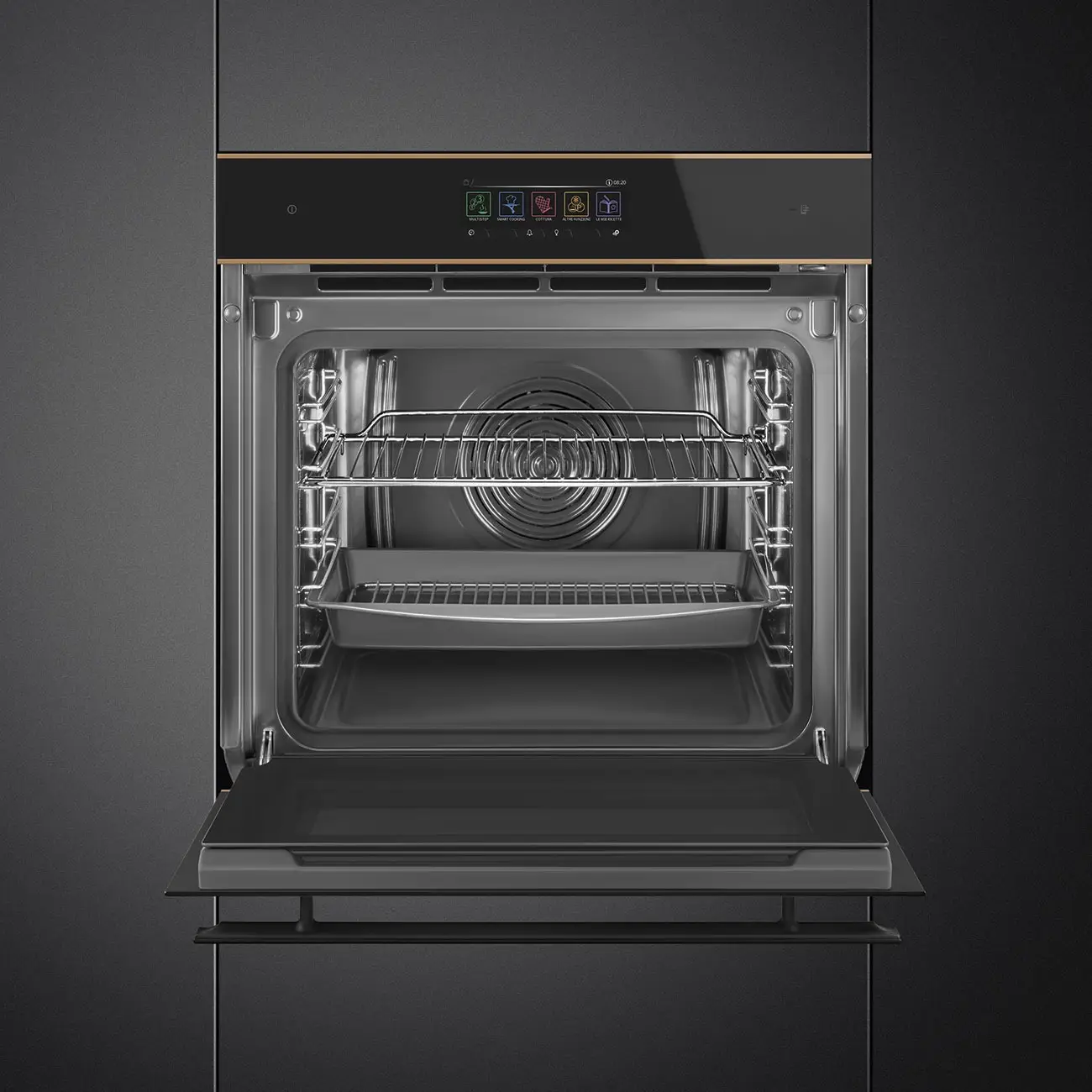 Piekarnik elektryczny z funkcją pary SO6606WS4PNR Dolce Stil Novo Czarne szkło + miedź