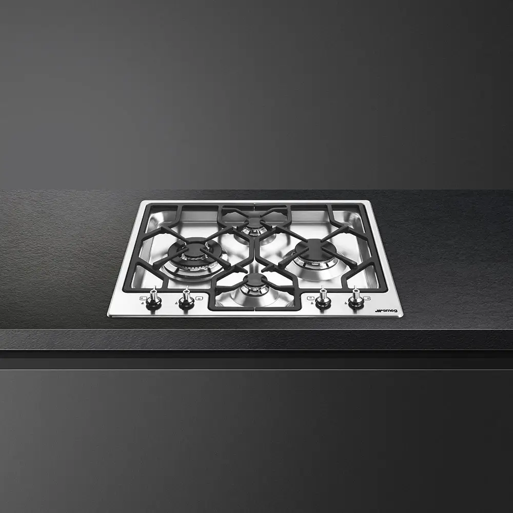 Płyta gazowa PGF64-4 w kolorze stali nierdzewnej firmy Smeg z serii Classica została zaprojektowana w celu osiągnięcia najwyższej wydajności, posiada też ultra-szybki palnik, który gwarantuje optymalne gotowanie. Emaliowane ruszty z żeliwa i stali oraz aluminiowe palniki zostały zaprojektowane tak, aby zmaksymalizować dostępną przestrzeń.