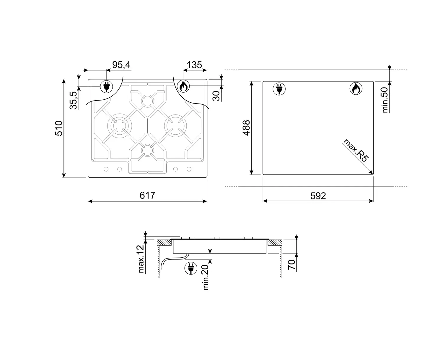 Smeg - Płyta gazowa PGF64-4 Classica Stal nierdzewna