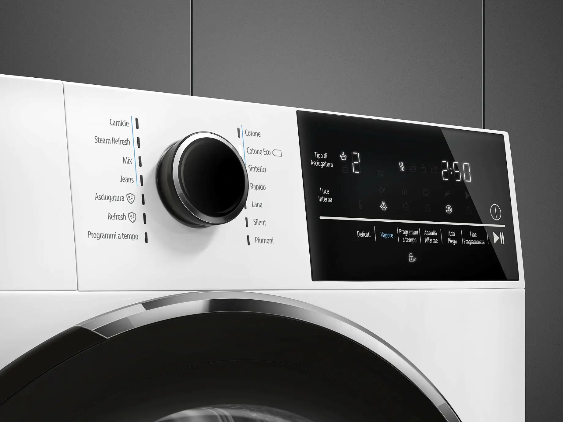 Suszarka Smeg wyposażona jest w bezszczotkowy silnik inwerterowy, który zapewnia niezawodność i cichą pracę. Posiada także czujnik wilgotności, który dostosowuje czas suszenia do aktualnego stopnia wilgotności odzieży.