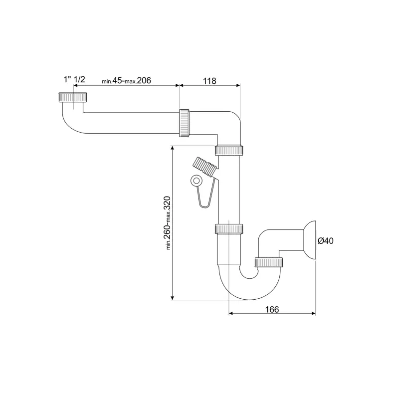 Syfon do pojedynczego odpływu. Łatwy w montażu, z możliwością bezpośredniego przyłączenia do otworu przelewowego. Przyłącze do zlewu o średnicy 1½ cala.