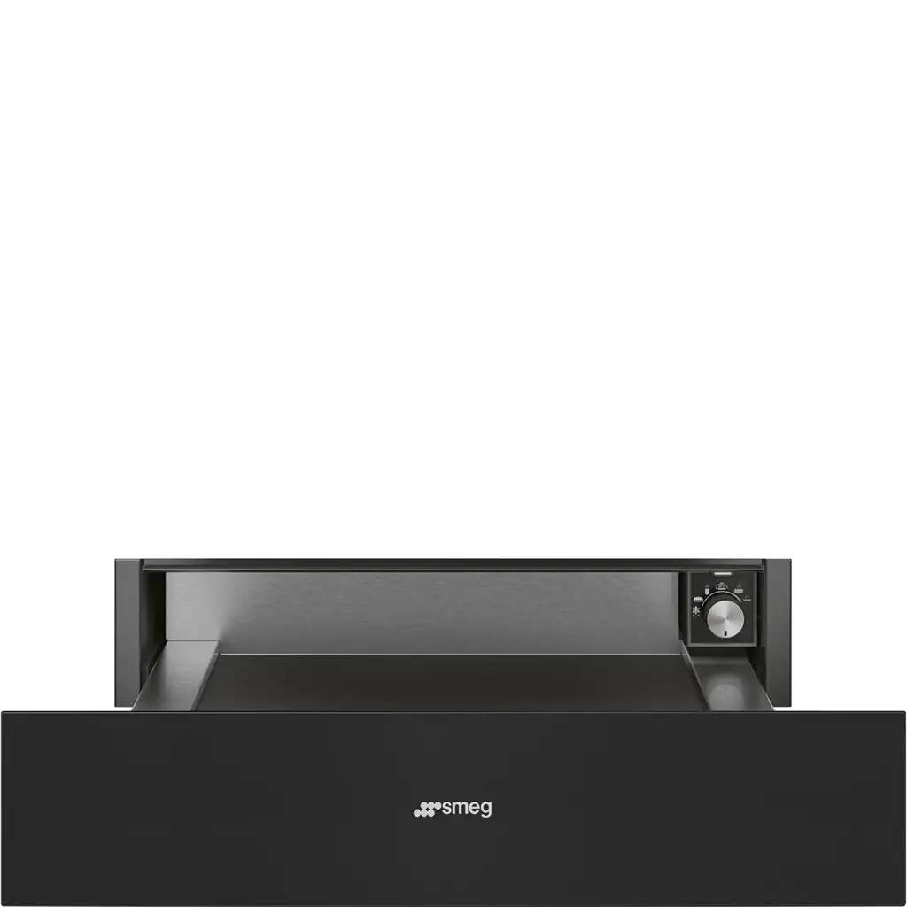 Szuflada do podgrzewania naczyń CPR315N do zabudowy w wykończeniu czarnym matowym z serii Classica firmy Smeg to bardzo dobry sposób na utrzymaniu gotowych do podawania gorącego posiłku naczyń.