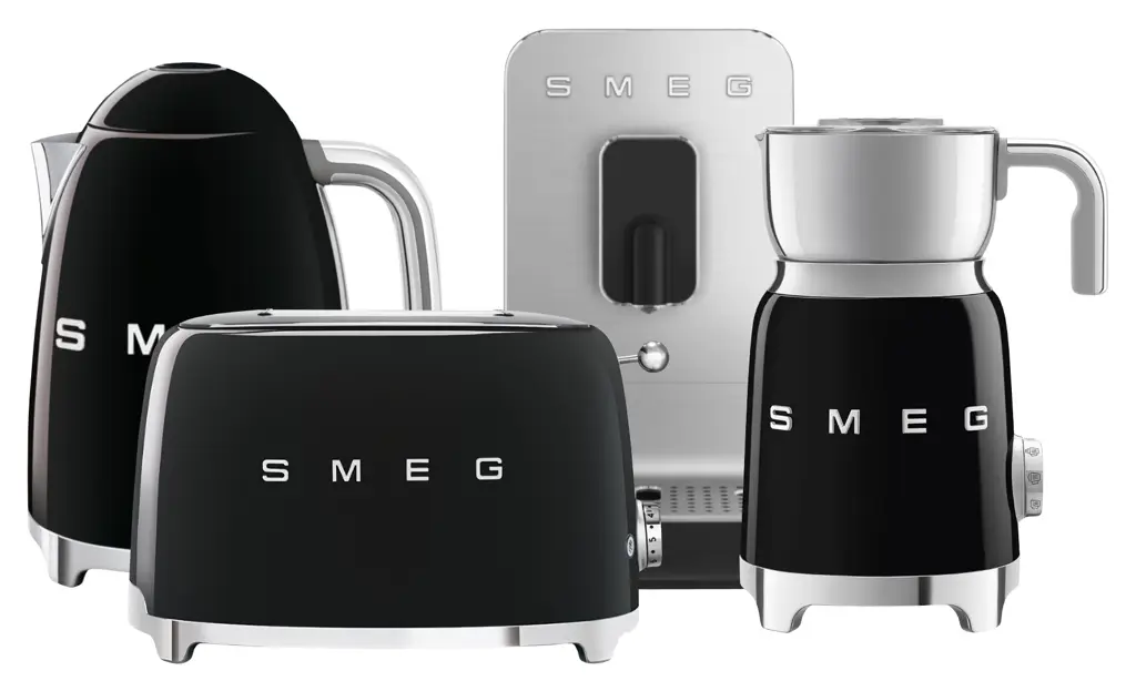 Oferowany zestaw kawowy produktów z linii 50’s Retro Style marki Smeg ułatwi i przyśpieszy przygotowywanie codziennej kawy z dodatkiem spienionego mleka i tostów, a dzięki czajnikowi będzie można jednocześnie zagotować wodę np. na herbatę. Wykonane z wysokiej jakości materiałów - m.in. tworzywa i stali nierdzewnej - urządzenia mają przemyślany design o opływowych kształtach i chromowanych podstawach, który w połączeniu z eleganckim czarnym kolorem sprawia, że świetnie zaprezentują się one na blacie kuchennym - można je będzie przechowywać na widoku, gdy akurat nie będą używane.