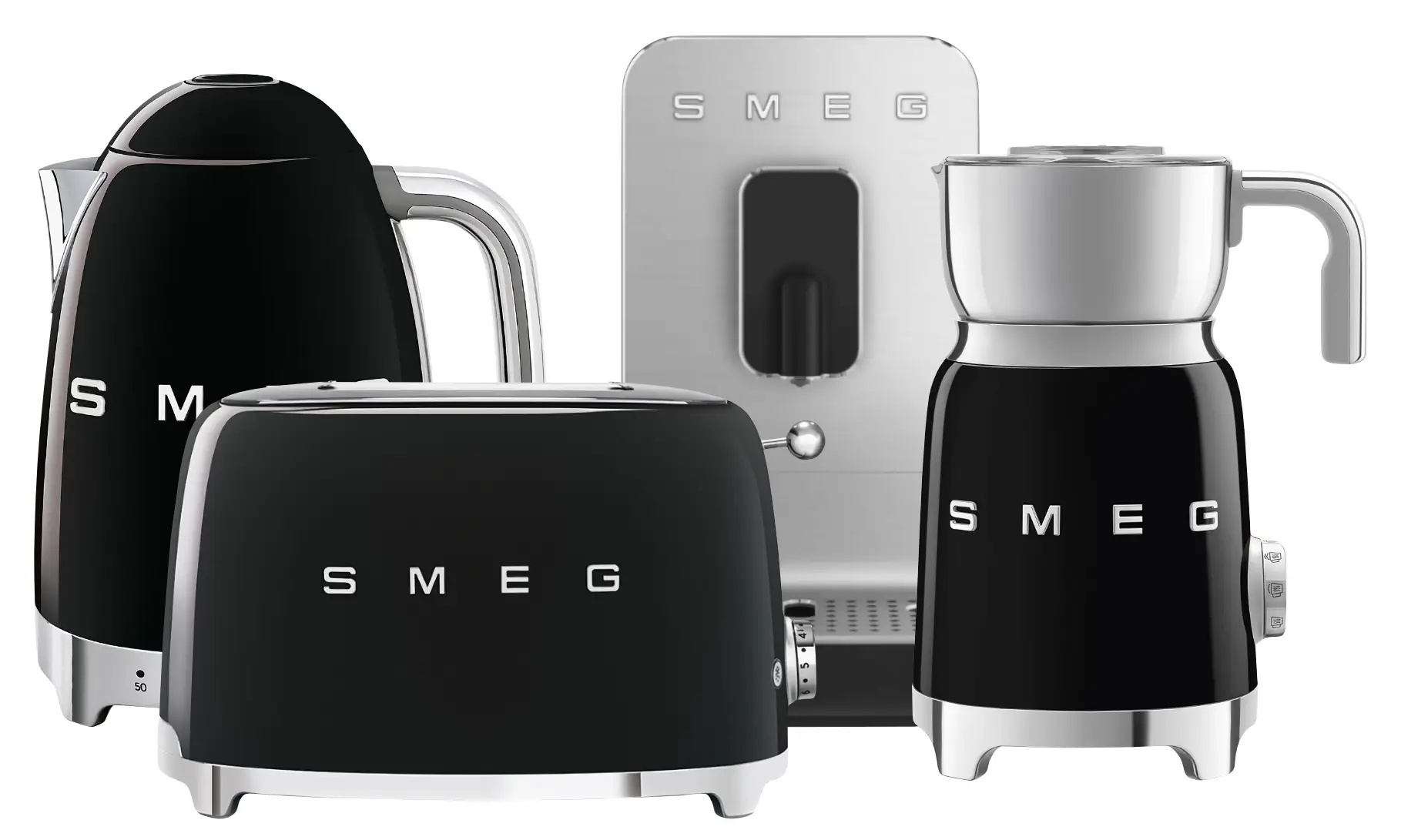 Oferowany zestaw kawowy produktów z linii 50’s Retro Style marki Smeg ułatwi i przyśpieszy przygotowywanie codziennej kawy z dodatkiem spienionego mleka i tostów, a dzięki czajnikowi klf04 będzie można jednocześnie zagotować wodę np. na herbatę. Wykonane z wysokiej jakości materiałów - m.in. tworzywa i stali nierdzewnej - urządzenia mają przemyślany design o opływowych kształtach i chromowanych podstawach, który w połączeniu z czarnym kolorem sprawia, że elegancko zaprezentują się one na blacie kuchennym - można je będzie przechowywać na widoku, gdy akurat nie będą używane.