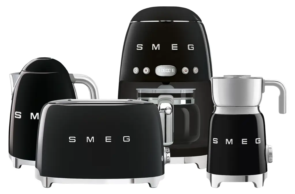 Zestawy produktów z ekspresami z linii 50’s Retro Style marki Smeg ułatwią i przyśpieszą przygotowywanie kawy lub śniadań - dołączony toster pozwoli zrobić grzanki, czajnik umożliwi zagotowanie wody na herbatę, a spieniacz przyda się do uzyskiwania spienionego mleka. Konstrukcje urządzeń wykonane zostały z wysokiej jakości materiałów - m.in. tworzywa i stali nierdzewnej - i mają przemyślany design o opływowych kształtach i chromowanych podstawach, który w połączeniu z kolorowymi wykończeniami sprawia, że elegancko prezentują się one na blacie kuchennym - można je przechowywać na widoku, gdy akurat nie będą używane.