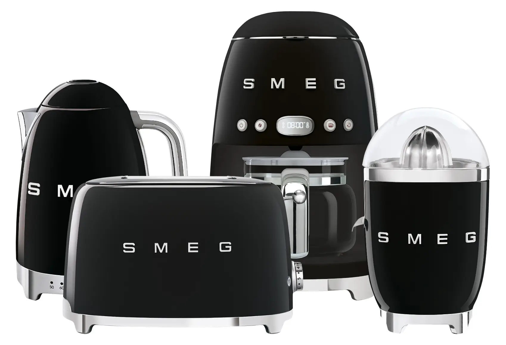 Zestawy produktów z ekspresami z linii 50’s Retro Style marki Smeg ułatwią i przyśpieszą przygotowywanie kawy lub śniadań - dołączony toster pozwoli zrobić grzanki, a czajnik z regulacją temperatury umożliwi zagotowanie wody na herbatę. Znajdująca się w komplecie wyciskarka da możliwość uzyskiwania świeżego soku z cytrusów jako dodatek do posiłków, dań i deserów. Konstrukcje urządzeń wykonane zostały z wysokiej jakości materiałów - m.in. stali nierdzewnej i tworzywa - i mają przemyślany design o opływowych kształtach i chromowanych podstawach, który w połączeniu z kolorowymi wykończeniami sprawia, że elegancko prezentują się one na blacie kuchennym - można je przechowywać na widoku, gdy akurat nie będą używane.