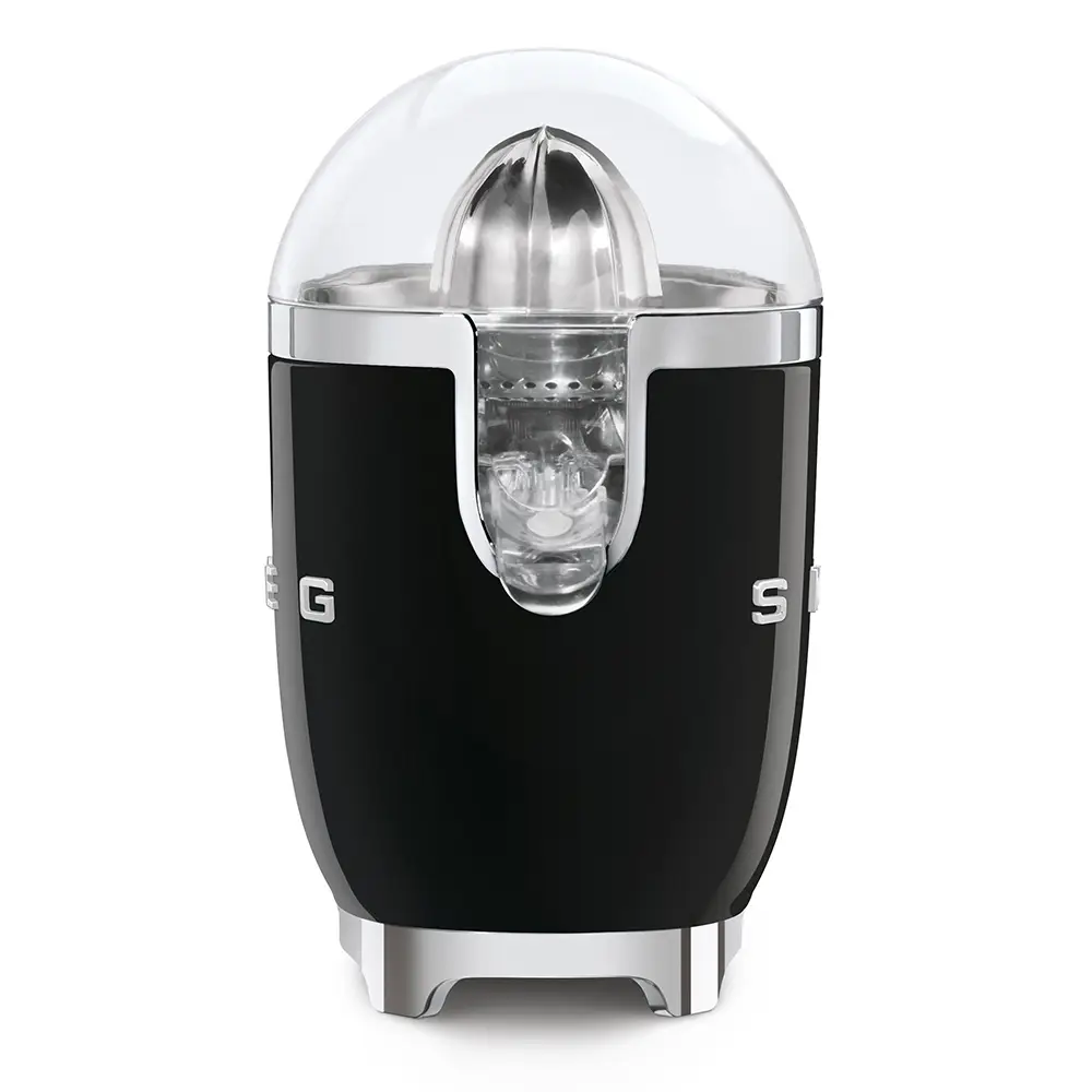 Elektryczna wyciskarka do cytrusów w czarnym kolorze pozwoli na łatwe uzyskanie świeżego soku z cytryn, grejpfrutów czy pomarańczy. Posiada ona silnik ze zintegrowanym czujnikiem włączania / wyłączania. Wyposażona została również w dzióbek z zabezpieczeniem przed kapaniem, który ogranicza zabrudzenia na jej powierzchni umożliwiając wygodne przelewanie soku do dzbanków czy szklanek. Stożek wyciskający wykonano ze stali nierdzewnej, tak samo filtr, dzięki czemu urządzenie jest trwałe i odporne na korozję. Antypoślizgowe nóżki zapewniają większą stabilność podczas pracy z wyciskarką, a schowek na przewód zasilający ułatwia jej przechowywanie. Dodatkowo urządzenie posiada pokrywkę z przezroczystego Tritanu bez BPA, która chroni je przed kurzem, ułatwiając czyszczenie.