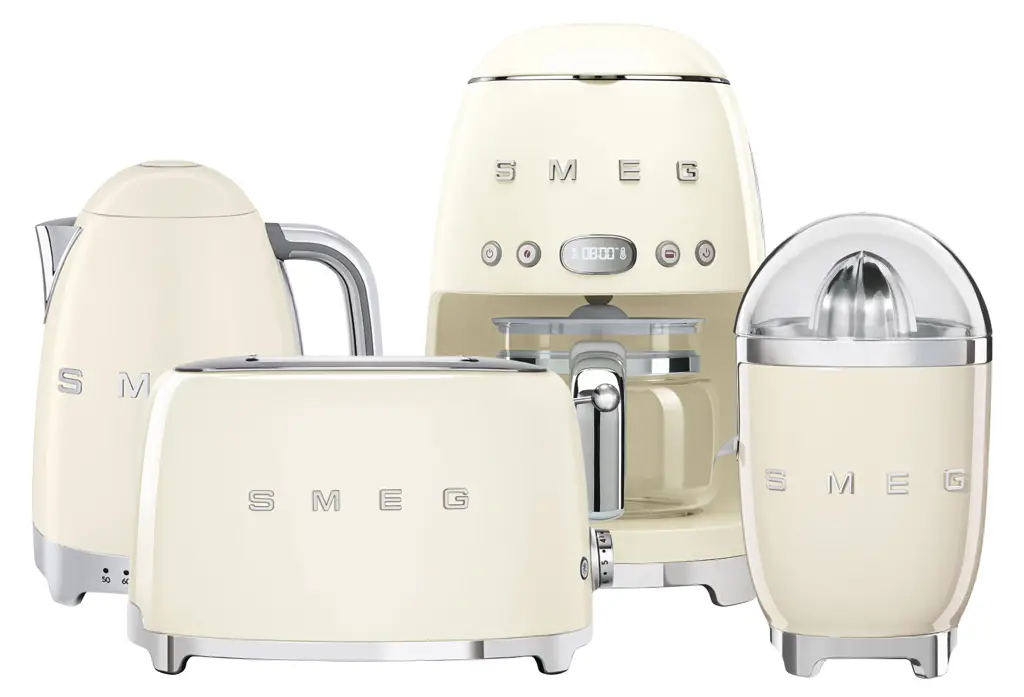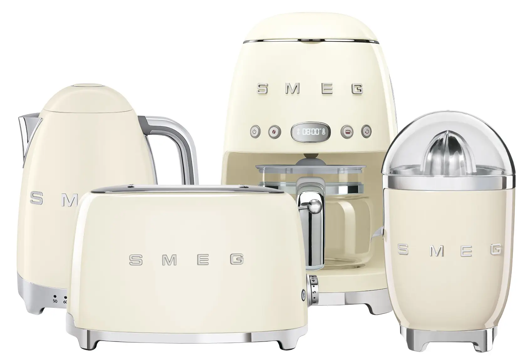 Zestawy produktów z ekspresami z linii 50’s Retro Style marki Smeg ułatwią i przyśpieszą przygotowywanie kawy lub śniadań - dołączony toster pozwoli zrobić grzanki, a czajnik z regulacją temperatury umożliwi zagotowanie wody na herbatę. Znajdująca się w komplecie wyciskarka da możliwość uzyskiwania świeżego soku z cytrusów jako dodatek do posiłków, dań i deserów. Konstrukcje urządzeń wykonane zostały z wysokiej jakości materiałów - m.in. stali nierdzewnej i tworzywa - i mają przemyślany design o opływowych kształtach i chromowanych podstawach, który w połączeniu z kolorowymi wykończeniami sprawia, że elegancko prezentują się one na blacie kuchennym - można je przechowywać na widoku, gdy akurat nie będą używane.