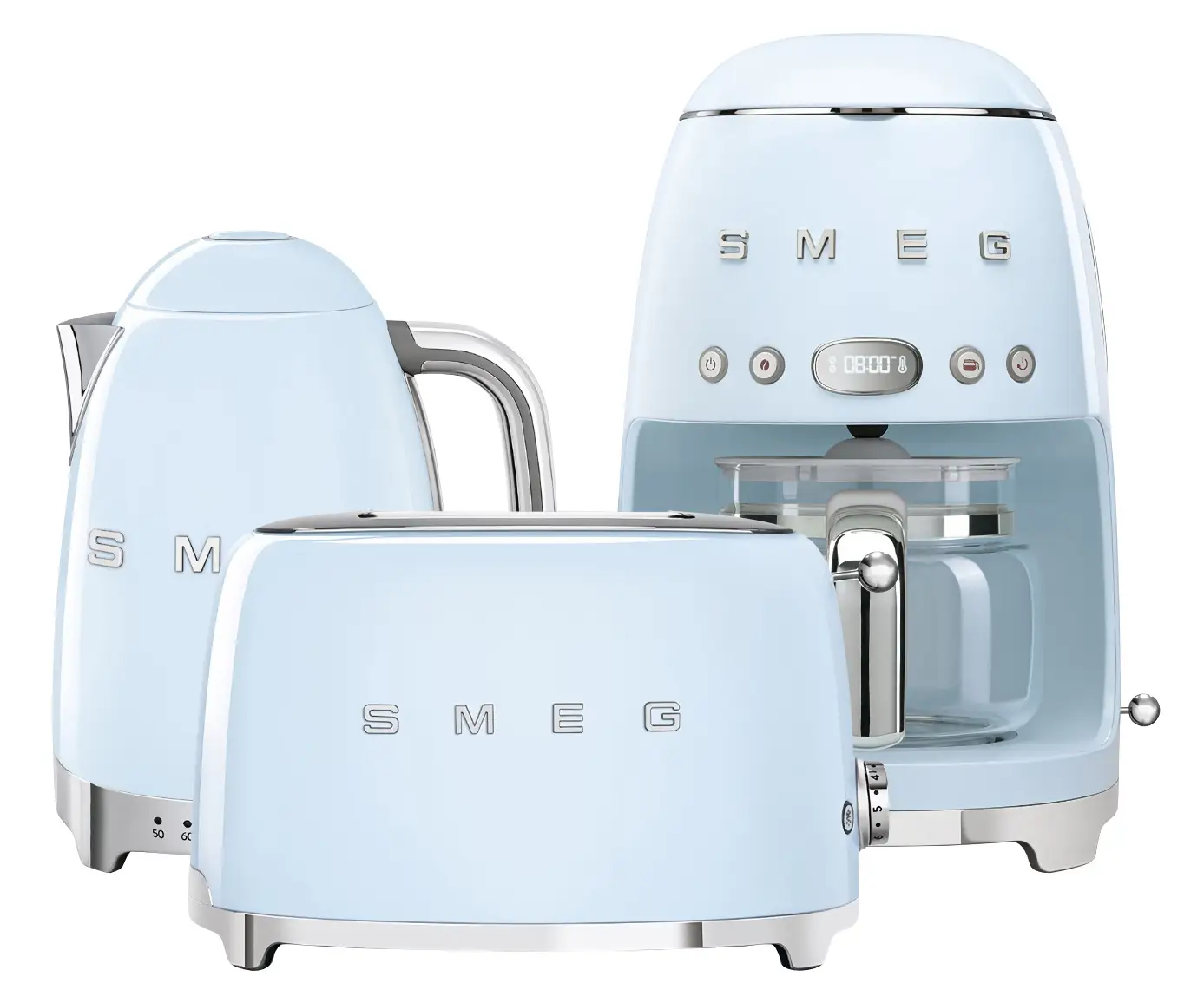 Zestawy produktów z ekspresami z linii 50’s Retro Style marki Smeg ułatwią i przyśpieszą przygotowywanie kawy lub śniadań - dołączony toster pozwoli zrobić grzanki, a czajnik z regulacją temperatury umożliwi zagotowanie wody na herbatę. Konstrukcje urządzeń wykonane zostały z wysokiej jakości materiałów - m.in. stali nierdzewnej i tworzywa - i mają przemyślany design o opływowych kształtach i chromowanych podstawach, który w połączeniu z kolorowymi wykończeniami sprawia, że elegancko prezentują się one na blacie kuchennym - można je przechowywać na widoku, gdy akurat nie będą używane.