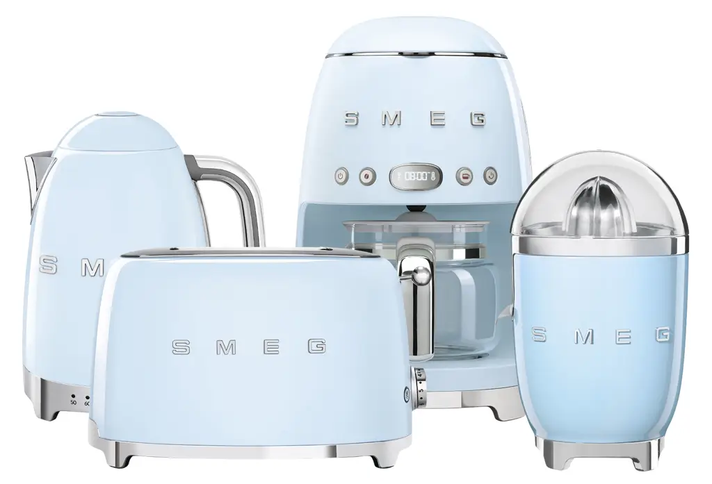 Zestawy produktów z ekspresami z linii 50’s Retro Style marki Smeg ułatwią i przyśpieszą przygotowywanie kawy lub śniadań - dołączony toster pozwoli zrobić grzanki, a czajnik z regulacją temperatury umożliwi zagotowanie wody na herbatę. Znajdująca się w komplecie wyciskarka da możliwość uzyskiwania świeżego soku z cytrusów jako dodatek do posiłków, dań i deserów. Konstrukcje urządzeń wykonane zostały z wysokiej jakości materiałów - m.in. stali nierdzewnej i tworzywa - i mają przemyślany design o opływowych kształtach i chromowanych podstawach, który w połączeniu z kolorowymi wykończeniami sprawia, że elegancko prezentują się one na blacie kuchennym - można je przechowywać na widoku, gdy akurat nie będą używane.